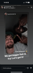 Το γεγονός έφερε έτσι μία σχετική ανάρτηση από τον Ισπανό φόργουορντ, ο οποίος και ανέβασε μία φωτογραφία του με τον συμπαίκτη του στον Παναθηναϊκού, όπου αυτός έχει υψωμένο το μεσαίο δάχτυλο του χεριού του.