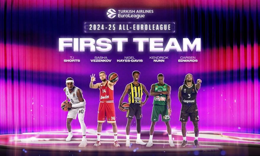 Τον φόργουορντ του Ολυμπιακού και τον γκαρντ του Παναθηναϊκού πλαισιώνουν οι Τι Τζέι Σορτς της Παρί, Κάρσεν Έντουαρντς της Μπάγερν και Νάιτζελ Χέιζ-Ντέιβις της Φενέρμπαχτσε. Δηλαδή δεν υπάρχει στην καλύτερη πεντάδα κανένας σέντερ.