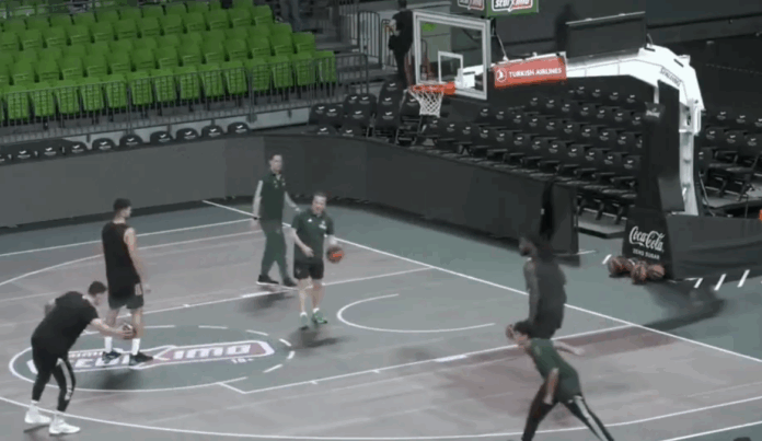 Στην ανοιχτή προπόνηση της Κυριακής στο ΟΑΚΑ, ο Σαρπ Αταμάν κάνει… σκαστή πάσα στον Ντίνα Μήτογλου που βάζει ένα τρίποντο όπως το χθεσινό στην Τουρκία!