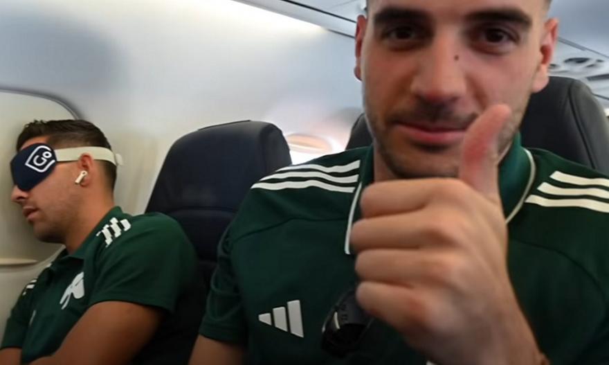 Το βίντεο του PAO TV αποτύπωσε τις στιγμές που πέρασαν οι «πράσινοι» στο αεροσκάφος, τα «πηγαδάκια», τη μουσική του Λοντίγκιν, το παιχνίδι του Σιώπη και τον… ύπνο του Μπακασέτα πλάι στον κολλητό του, Ιωαννίδη.