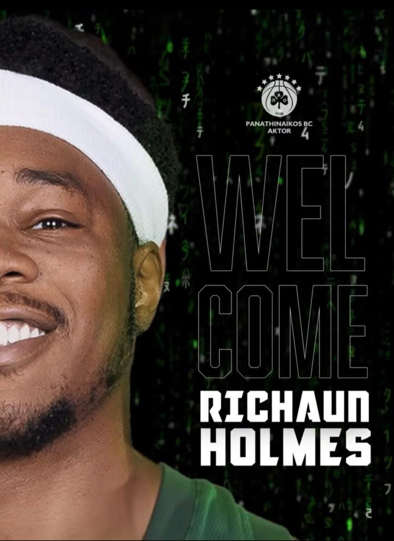 «Η ΚΑΕ Παναθηναϊκός AKTOR ανακοινώνει την απόκτηση του Ρισόν Χολμς για τα επόμενα δύο χρόνια (1+1).