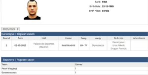 Σύμφωνα με σερβικό σάιτ και στατιστικά των διαιτητών και τα παινχίδια που έχουν σφυρίξει, ο συγκεκριμένο διαιτητής την περασμένη σεζόν σφύριξε 7(!!!) φορές τον Ολυμπιακό.