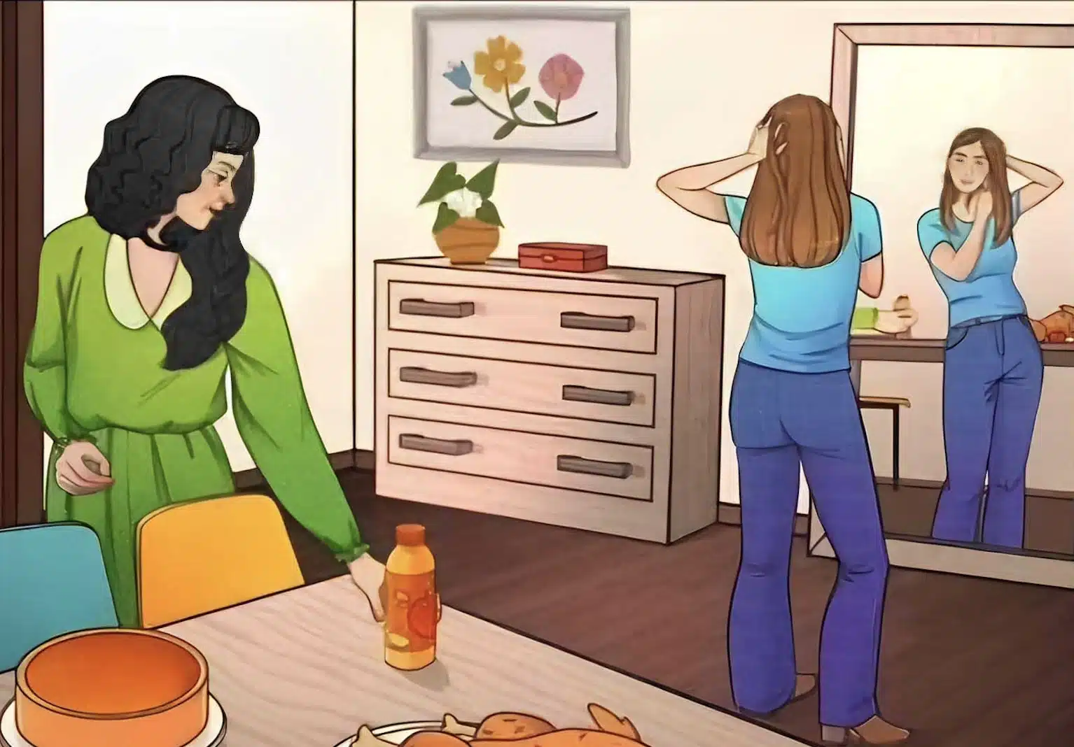 Στην εικόνα με την τραπεζαρία βλέπουμε δύο κοπέλες. Η μια στρώνει το τραπέζι ενώ η κοιτάζει σε έναν καθρέφτη. Που είναι το λάθος;