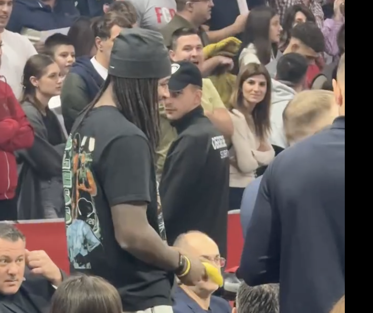 Ο Γάλλος Σέντερ φαίνεται σε ένα βίντεο να κρατάει μια μπανάνα και να κάνει μια χαρακτηριστική κίνηση προς τους φίλους του Ερυθρού Αστέρα.