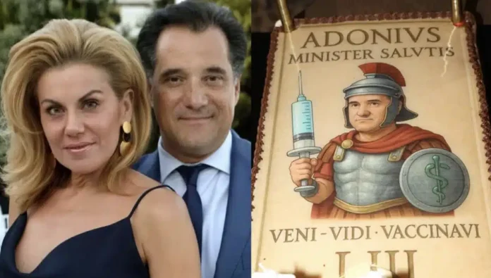«Ρωμαίος στρατηγός» ο Άδωνις Γεωργιάδης: Η τούρτα γενεθλίων από την Ευγενία Μανωλίδου – «Ήλθα, είδα, εμβολίασα»