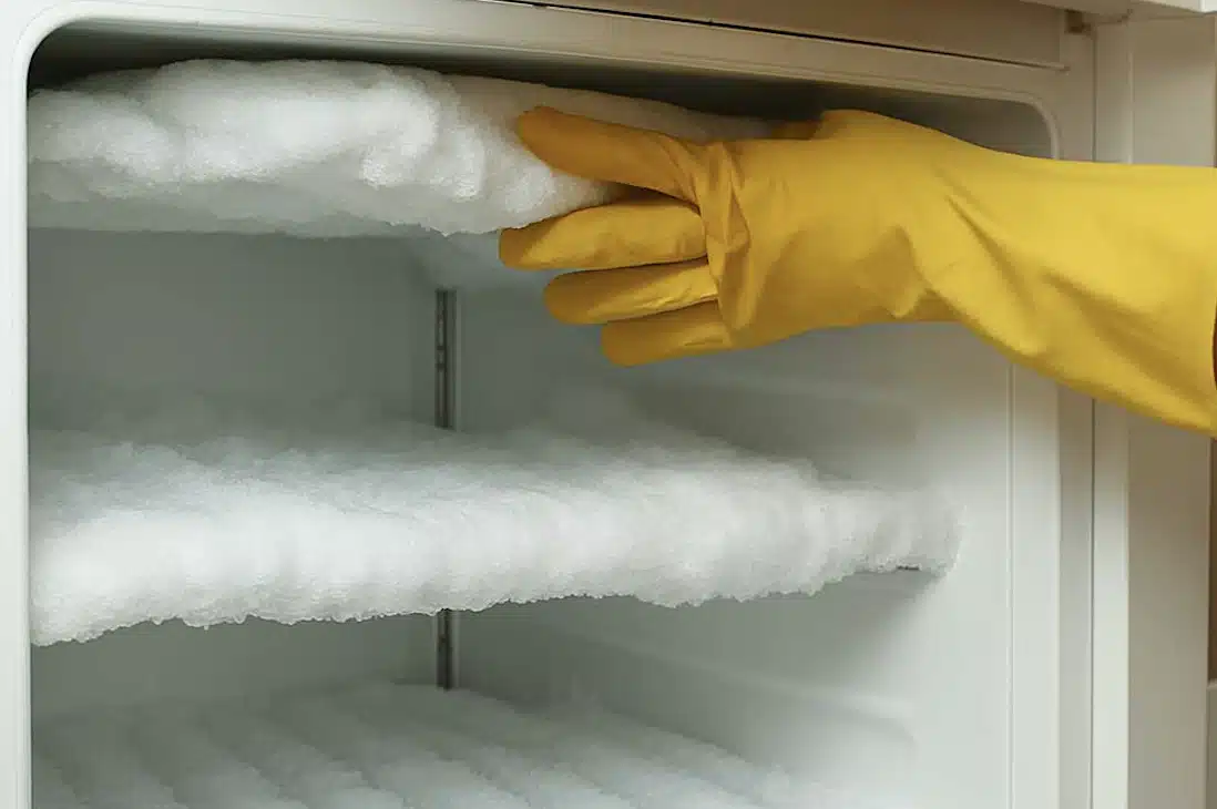 Αρχικά βγάζετε την πρίζα από το ρεύμα, στη συνέχεια αλείφετε ή ψεκάζετε τον καταψύκτη σας εσωτερικά με φυτικό λάδι. Αφήνετε λίγη ώρα και θα δείτε τον πάγο να φεύγει μόνος του!