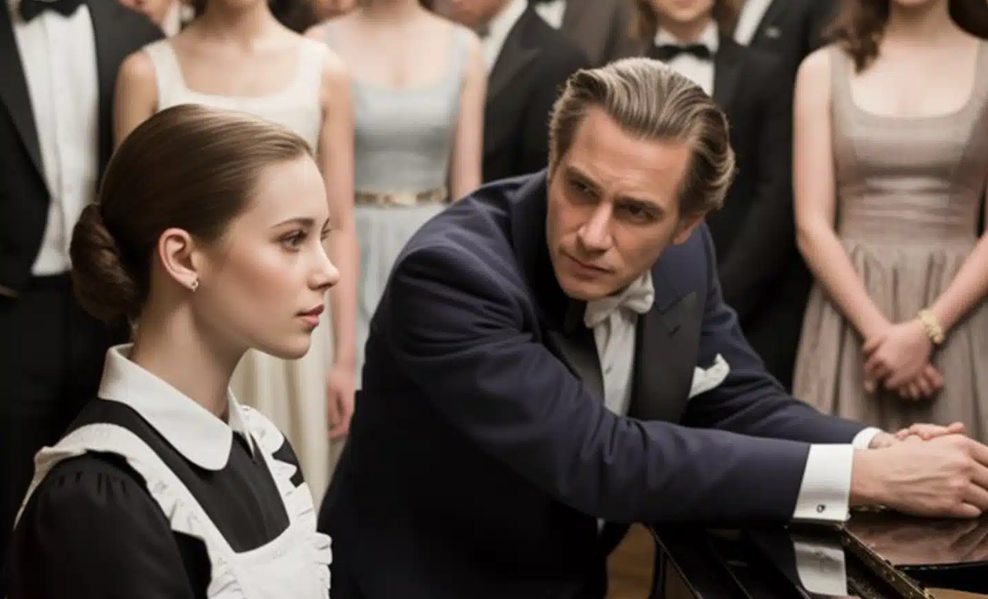 Η Τζούλια έγνεψε καταφατικά και άρχισε να σκουπίζει προσεκτικά το γυαλιστερό πανάκριβο πιάνο. Όμως, όταν τα δάχτυλά της άγγιξαν τα πλήκτρα, κάτι ξύπνησε μέσα της — αυτό δεν ήταν απλώς ένα αντικείμενο· ήταν το κρυφό της πάθος.