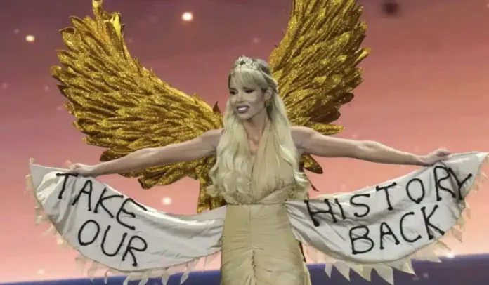 Στο πλαίσιο του διαγωνισμού Εθνικών Στολών που πραγματοποιήθηκε την Τετάρτη 19 Νοεμβρίου στην πόλη Νοντάμπουρι, η Μαίρη Χατζηπαύλου εντυπωσίασε το κοινό ανεβαίνοντας στη σκηνή με χρυσά φτερά και ένα φόρεμα που παρέπεμπε στη «Νίκη της Σαμοθράκης».