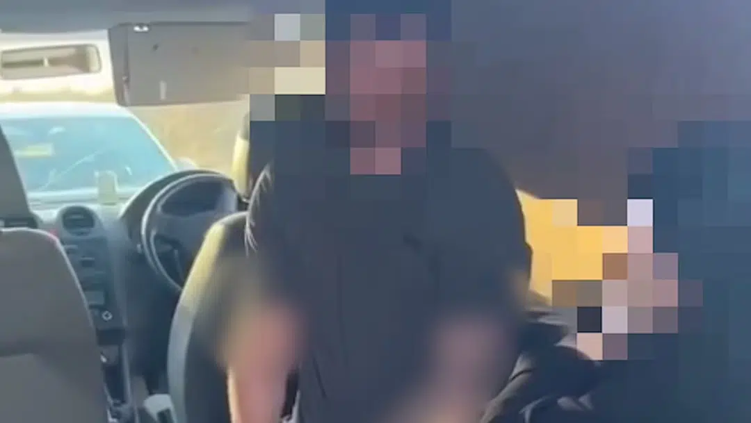Στο βίντεο που καταγράφηκε στην περιοχή του Ντόνκαστερ, η Βρετανίδα ακούγεται να φωνάζει «την πη@άς στο πίσω μέρος του βαν;» πριν να ανοίξει την πόρτα του οχήματος.
