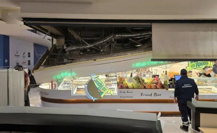 Πανικός προκλήθηκε σήμερα σε κατάστημα τουεμπορικού κέντρου Mediterranean Cosmos στη Θεσσαλονίκη, όταν σημειώθηκε αιφνίδια πτώση τμήματος της οροφής, την ώρα που ο χώρος του εστιατορίου ήταν γεμάτος κόσμο.