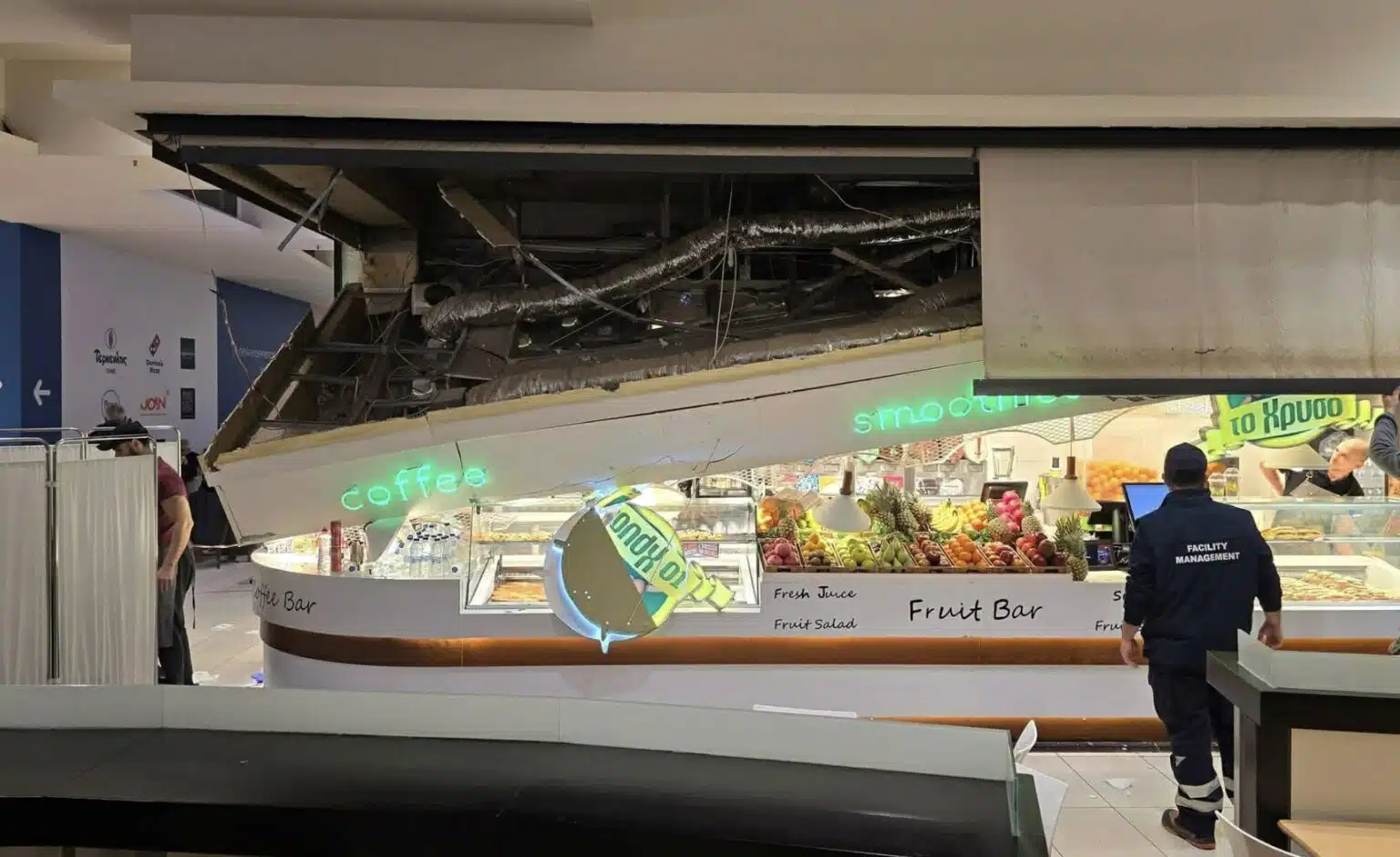«Περπατούσα και ξαφνικά στο χώρο που βρίσκονται τα εστιατόρια, έπεσε η οροφή. Χτύπησε μια γυναίκα. Ήταν αιμόφυρτη. Ο κόσμος έτρεχε πανικόβλητος. Άνδρες σεκιούριτι που ήταν εκεί έστησαν ένα παραβάν και καλύψανε την τραυματία. Το έδαφος ήταν γεμάτο αίματα. Είχαν βάλει και κορδέλα να μην πλησιάζει κανείς τον χώρο», δήλωσε αυτόπτης μάρτυρας στο thestival.gr.