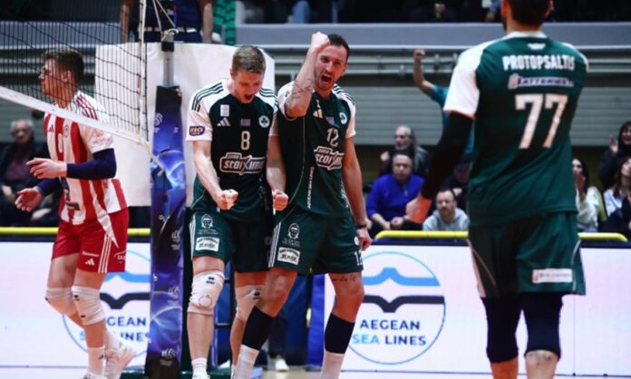 Επιβλητικός και αποφασισμένος παρουσιάστηκε ο Παναθηναϊκός στο κλειστό του Μετς, επικρατώντας εύκολα με 3-0 σετ του Ολυμπιακoύ και παίρνοντας εκδίκηση για τον χαμένο τελικό του Σούπερ Καπ. Οι «πράσινοι» είχαν τον έλεγχο της αναμέτρησης από νωρίς, πίεσαν στο σερβίς και επέβαλαν τον ρυθμό τους σε όλη τη διάρκεια του ντέρμπι.