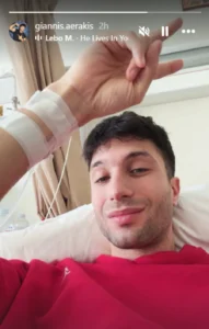 Το πρωί της 10ης Μαρτίου δημοσίευσε επίσης ένα story μέσα από το νοσοκομείο, στο οποίο κάνει το σήμα της νίκης, στέλνοντας μήνυμα αισιοδοξίας.