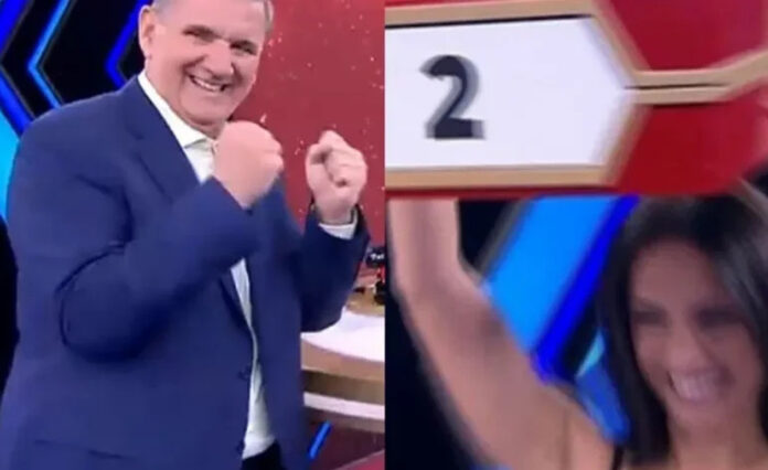 Το παιχνίδι διακόπηκε ξαφνικά από τον Γιώργο Θαναηλάκη, όταν στο πλατό εμφανίστηκε ο σύντροφός της, κρατώντας στα χέρια του ένα μικρό κουτί.