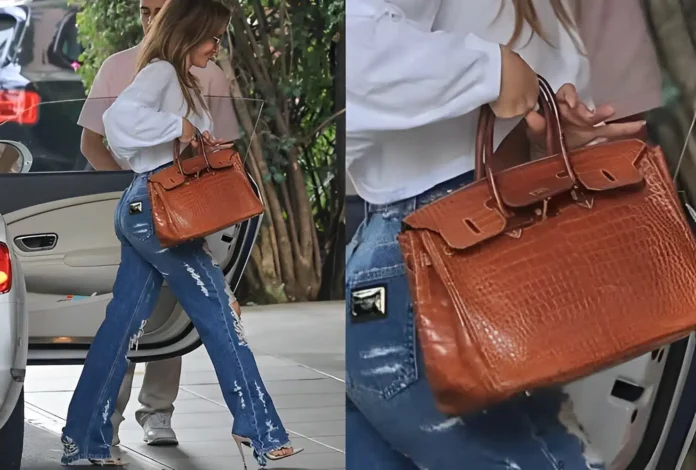 H διάσημη γυναίκα εθεάθη στο Beverly Hills με μια εξαιρετική σπάνια Hermès Birkin τσάντα από δέρμα κροκοδείλου, μια επιλογή που μπορεί να κοστίζει από 5.000 έως και 500.000 δολάρια, αναλόγως των μοναδικών χαρακτηριστικών της. Για την εμφάνισή της, επέλεξε ένα κομψό λευκό μακρυμάνικο τοπ, μπλε σκισμένο τζιν και γόβες στιλέτο, ενώ έφτασε με ένα λευκό κάμπριο, αναδεικνύοντας μια δυναμική και αριστοκρατική εικόνα.