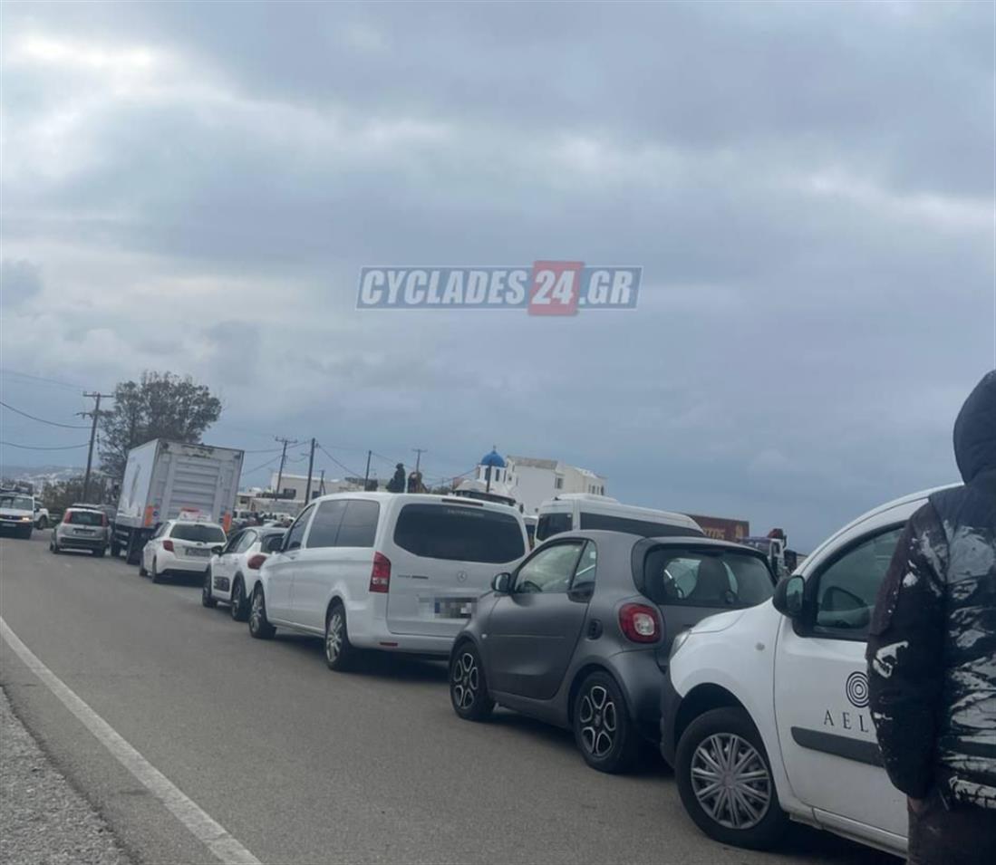 Παράλληλα, έχει δημιουργηθεί ουρά αυτοκινήτων στον δρόμο προς το Αθηνιό, με οδηγούς που επιχείρησαν να προσεγγίσουν το λιμάνι, χωρίς ωστόσο να είναι εφικτή η διέλευση.