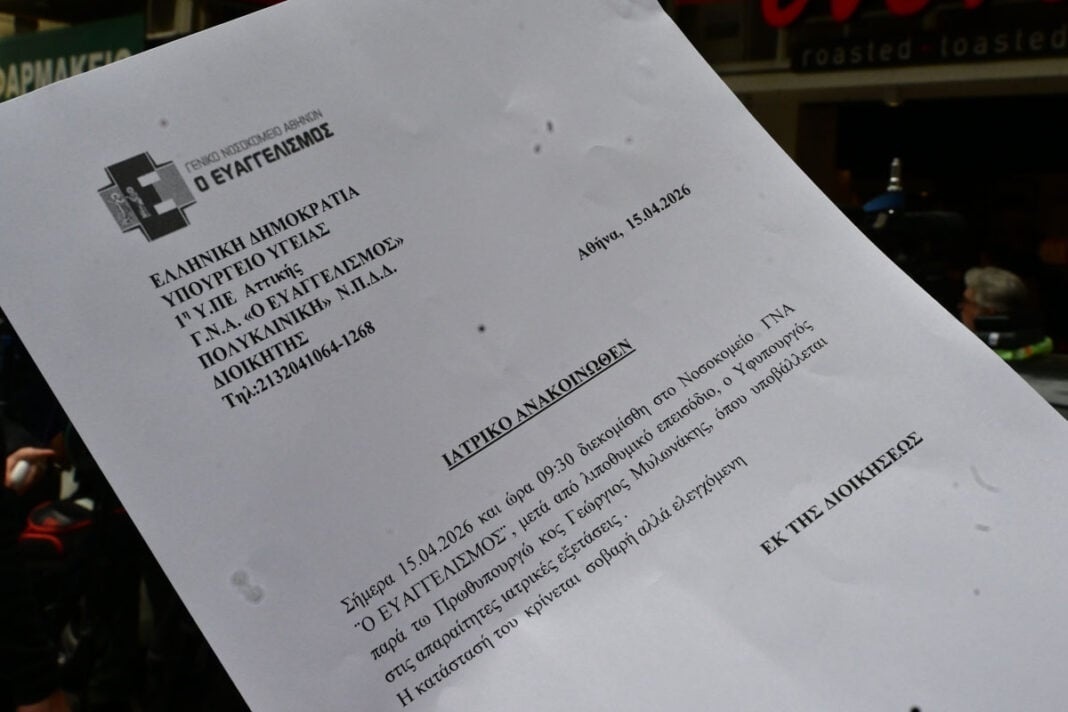 «Σήμερα 15.04.2026 και ώρα 09:30 διεκομίσθη στο Νοσοκομείο ΓΝΑ ”Ο ΕΥΑΓΓΕΛΙΣΜΟΣ”, μετά από λιποθυμικό επεισόδιο, ο Υφυπουργός παρά τω Πρωθυπουργώ κος Γεώργιος Μυλωνάκης, όπου υποβάλλεται στις απαραίτητες ιατρικές εξετάσεις. Η κατάστασή του κρίνεται σοβαρή αλλά ελεγχόμενη».
