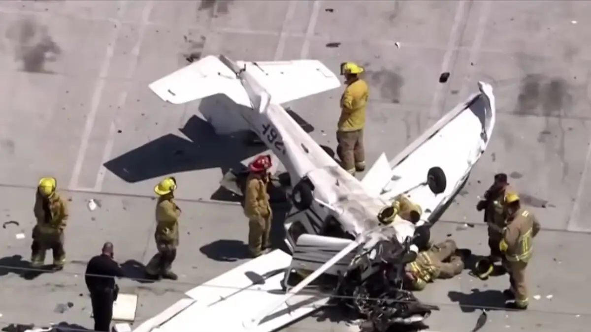 Ο πυροσβέστης Milo Cope της Πυροσβεστικής Υπηρεσίας του Λος Άντζελες (LAFD) δήλωσε ότι οι πυροσβέστες ανταποκρίθηκαν σε μια αποστολή διάσωσης, και ότι τα συνεργεία περίμεναν ένα τροχαίο ατύχημα, όχι αεροπορικό. «Όταν έφτασαν στον τόπο του συμβάντος, είδαν καλώδια υψηλής τάσης, με ονομαστική τάση έως 35.000 βολτ, στο έδαφος, και ένα Cessna Skyhawk αναποδογυρισμένο στο πάρκινγκ…»